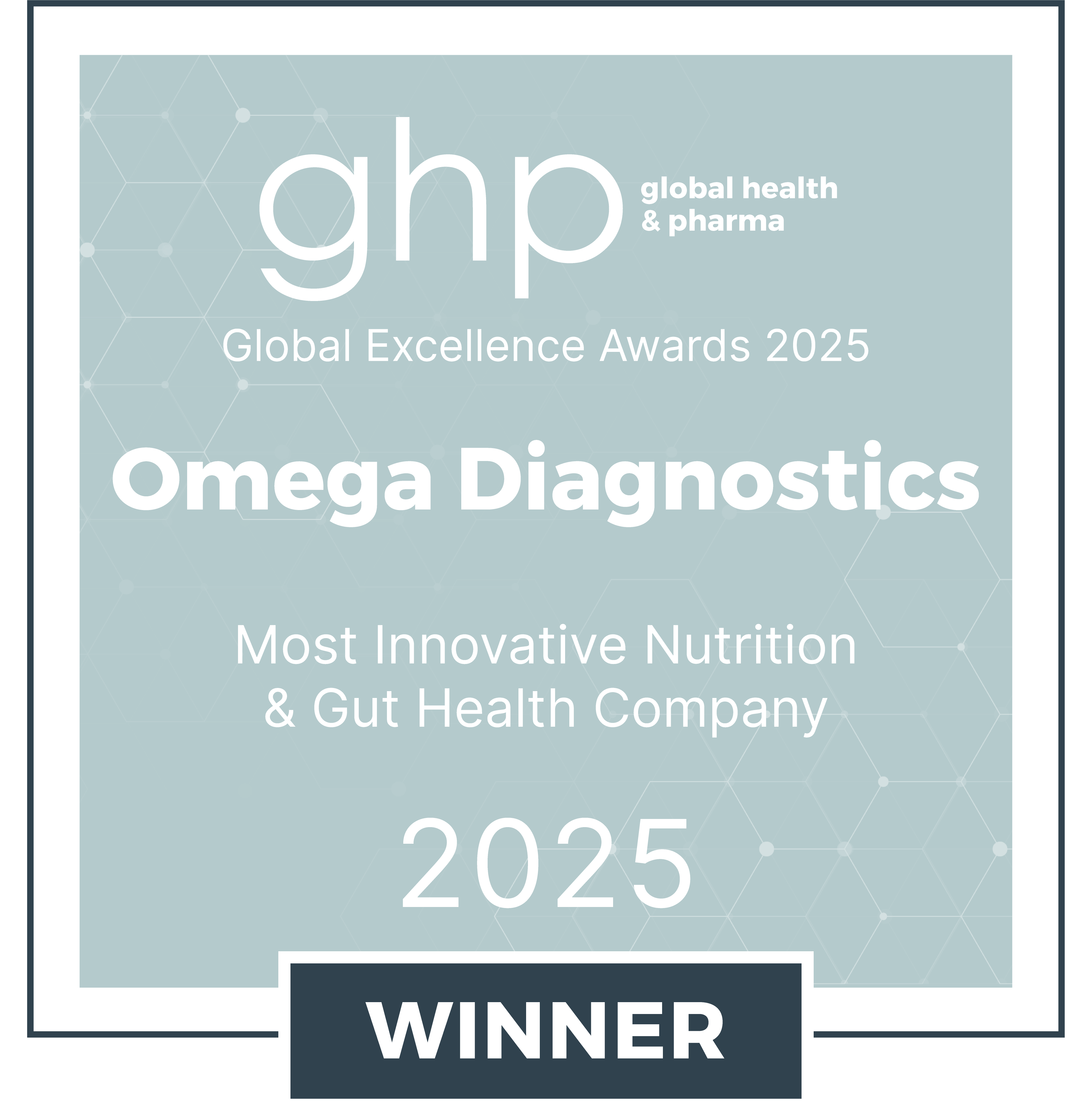 Spoločnosť Omega Diagnostics, priekopník v oblasti testovania črevného zdravia, potravinovej senzitivity a známa svojou oddanosťou kvalite, s potešením oznamuje, že sa nedávno stala držiteľom prestížneho ocenenia „Najinovatívnejšia spoločnosť v oblasti výživy a črevného zdravia 2025“, ktoré jej udelila spoločnosť Global Health & Pharma v rámci každoročného udeľovania cien Global Excellence Awards 2025.